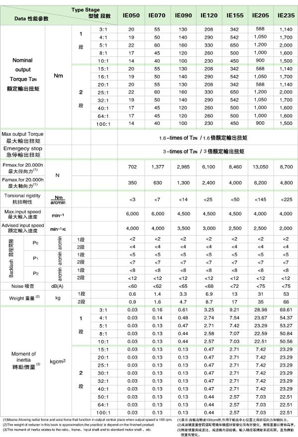 IB 系列精密行星減速機(jī)技術(shù)參數(shù)