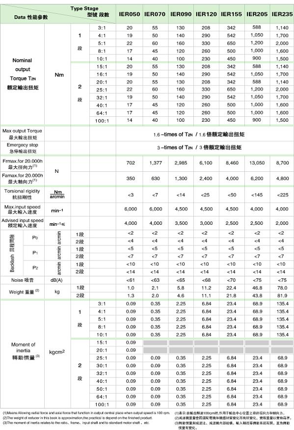 IBR 系列精密行星減速機(jī)技術(shù)參數(shù)